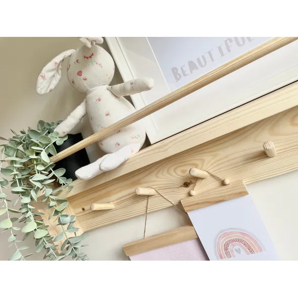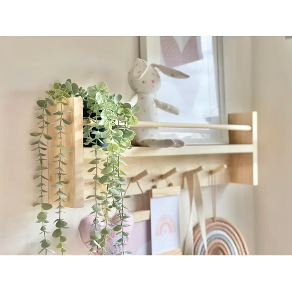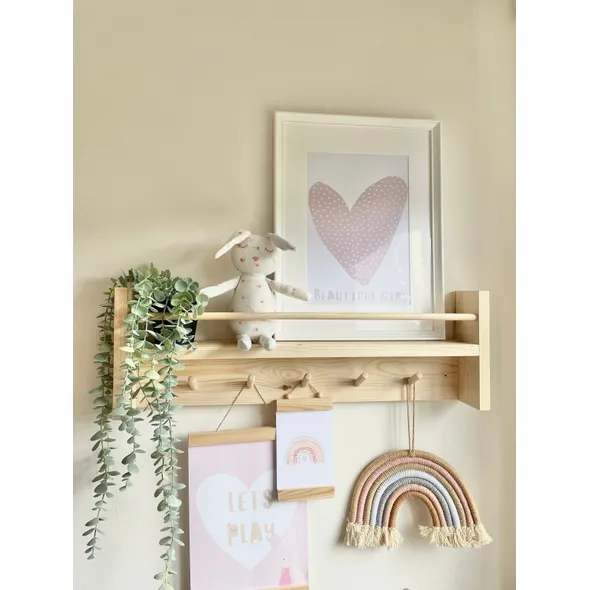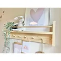 Peg Rail with Bookshelf - Key Hook / Hallway Shelf / Wood Shelf / Peg Hooks / Nursery Shelf / Book Shelf / Coat Rack______________________________________________________________________A beautifully hand crafted peg rail with bookshelf, a versatile perfect addition to any entryway, bedroom or nursery!This stunning made to order shelf is handmade with sustainably sourced hand selected pinewood and can be finished in a variety of colours and sizes. If you can't find the right size or colour then please don't hesitate to contact us.Please note that tolerances can be up to 1cm on this product, and colours may seem slightly different as shown in photo’s to real life. **COLOURS ** Dependant on the colour you choose will depend on how much of the wood grain shows through. Some finishes are with a wood furniture paint, and others are with a wood furniture stain. Please don’t hesitate to ask for further information. - Monday to Friday UK Mainland delivery between 8am and 6pm (We cannot currently ship overseas)- Wall fixings included- Bespoke, secure and robust packaging to ensure a safe deliveryPLEASE READPlease note that wood is a natural product and therefore may look slightly different in shade and/or grain. There will be knots and grain changes within the wood which adds to the uniqueness of each product. Whilst care is taken to ensure that all wood is treated, because it is a natural product your furniture may still respond to temperature and humidity variationsFor more photos check us out @:Instagram: @krafty_krewFacebook: @Kraftykrewco