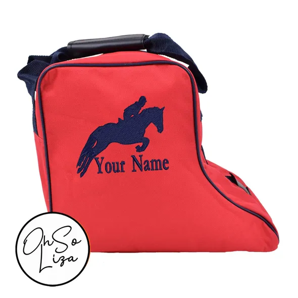 Welcome to Oh So Liza and thank you for visiting my shop. This Strong & Attractive Personalised Embroidered Short Riding Boot Bag is ideal to keep your Paddock Boots safe and clean while carrying, travelling or storing between Competitions or Ride Outs. This Deluxe Boot Bag is personalised with an Embroidered Horse and name as shown in the Gallery . ***About your Bag**** Made from toughened cordura nylon with full zip. Strengthened nylon handles with comfort pad for carrying. Inside Wipe-able Lining 10 Inches High 7.5 Inches Wide 12 Inches Long ***How to Order your Bag**** 1. Please select the Boot Bag colour from the dropdown menu above. Please leave all personalisation information including thread colour choice in the "Add your personalisation" box before check out. Unless otherwise stated a colour will be chosen to match the bag. Please see below of standard thread colour. Red/Navy Bag = Navy Thread Pink/Gray Bag = Silver Thread Black/Gray Bag = Gray Thread Blue/Royal Bag = Royal Thread If you have any questions please contact me and I will be happy to help. Thank You for looking at my shop. Liza © All designs and images belong to OhSoLiza and are subject to Copyright - do not replicate in any way.