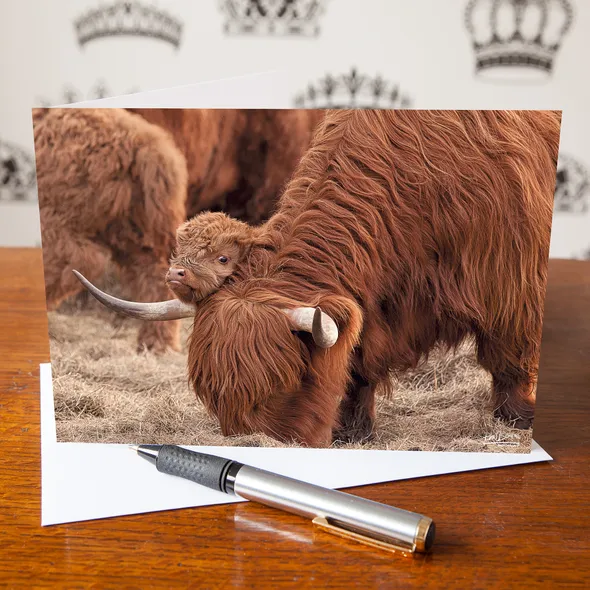 This image of a Highland Cow and Calf is one of my most popular and best selling picturesMy greetings cards are left blank for your own personal message.
