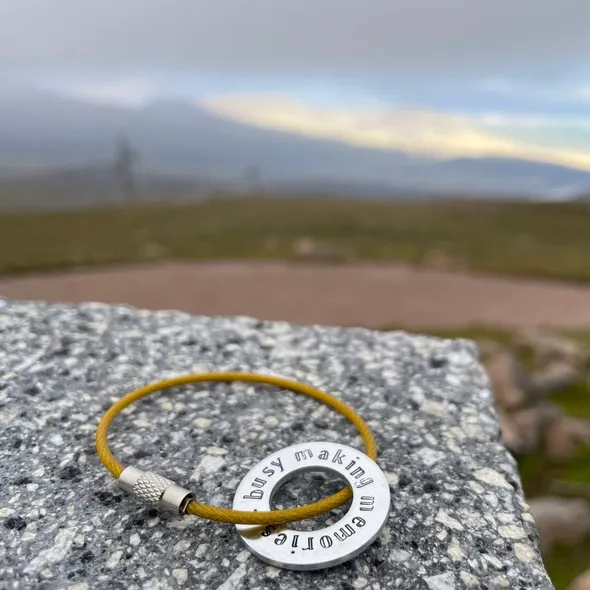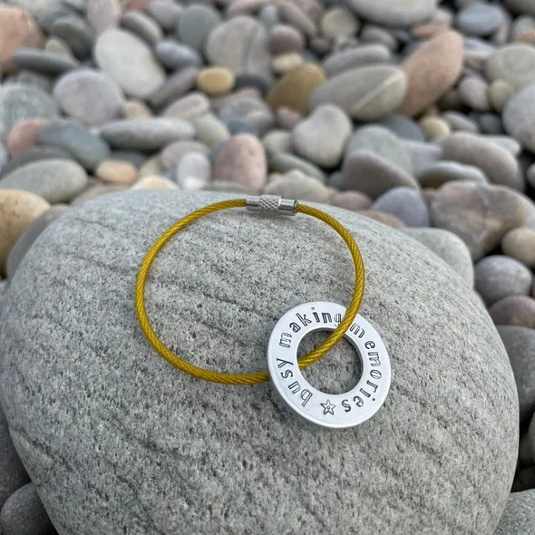 ???? Capture the essence of every adventure with the "Busy Making Memories" Hand Metal-Stamped Luggage Tag! Hand crafted, this delightful accessory features a 25mm/1in stamped washer suspended on your choice of coloured wire.