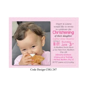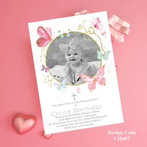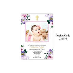 Girl's Photographic Christening / Baptism Invitation Cards Size A6 105mm x 148mm