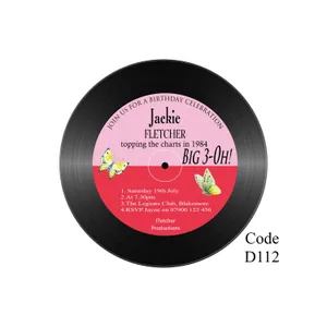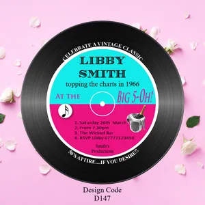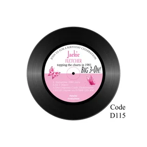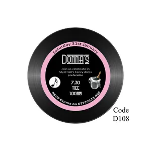 Women’s Personalised Circular Record Style Party Invitations Cards Size 145mm