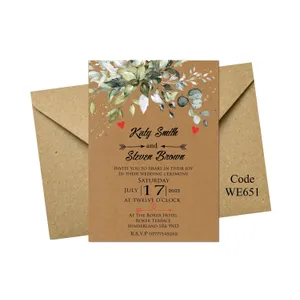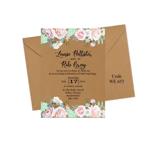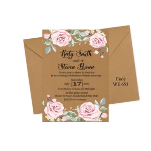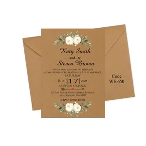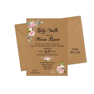 Personalised Floral Wedding Ceremony or Evening Reception Brown Kraft Invitation Cards - Size Options A6 105mm x 148mm or 5" x 7"