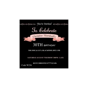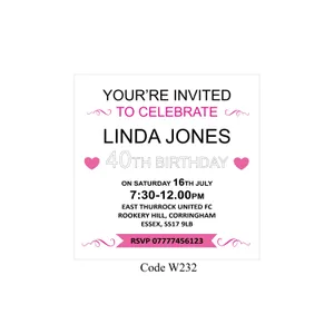 Personalised Women's Birthday Party Invitations Cards Square Size 145mm