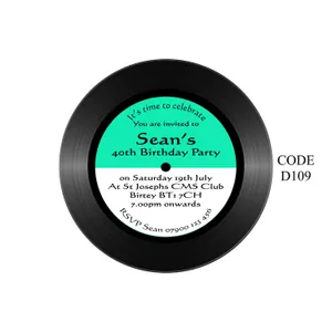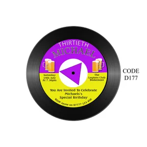 Men’s Personalised Circular Record Style Party Invitations Cards Size 145mm