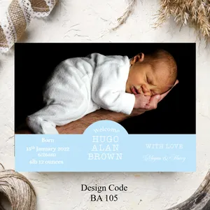 Personalised Stylish Baby Boy Birth Announcement Cards Size A6 105mm x 148mm