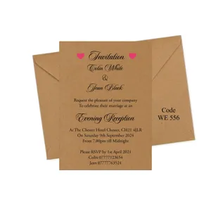 Personalised Wedding Ceremony or Evening Reception Invitations Card Size Options A6 148mm x 105mm or 5" x 7"