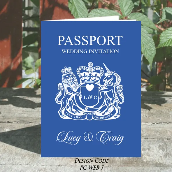 Wedding Passport Style Invitations. Whether your wedding takes place abroad far away or just across town. This travel themed passport wedding invitation are perfect for your wedding day. The 8 pages provide plenty of room to share your wedding details. The customised Wedding Passport Style Invitations can have photo’s, map and details of the local area and transport and flights. This will help your family and friends when arranging travel and hotel accommodation.If you have any questions before you place your order please send us a MESSAGE