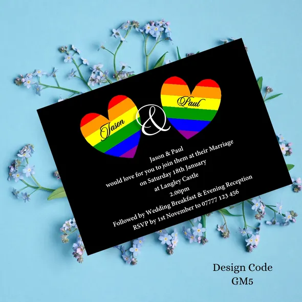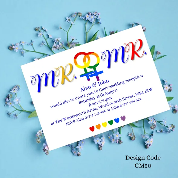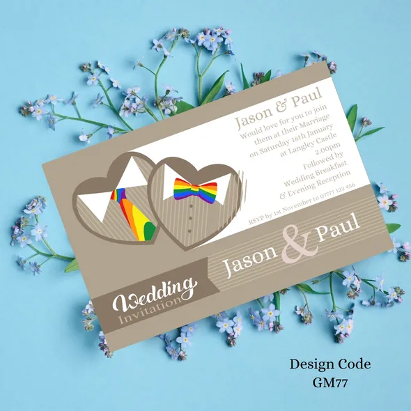 Same Sex Marriage Personalised Gay Men's Wedding Day Invitation Cards Size A6 105mm x 148mm