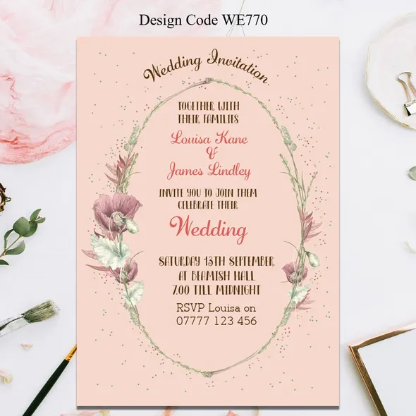 Personalised Wedding Ceremony or Evening Reception Invitations Size A6 148mm x 105mmPrinted full colour on 300gsm card printed Single Sided or Double SidedAll Wedding Day Stationery you require for your special day. We have various Wedding Day Ceremony Invitations and Evening Reception Invitations cards to chose from. All Professional designed, also text fully personalised according to your requirements.We can change background colour, text style and if you have your own design and want something different from our samples so please let us know, we are only to happy to help you with your order.If you don't like the styles we have listed we can do a bespoke style, in fact anything about our invitations can be changed.Any questions please send a message to carole@cpprintservices.co.uk
