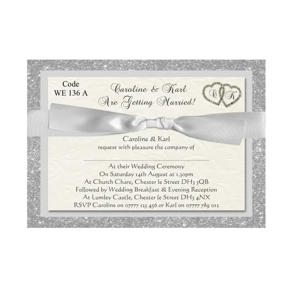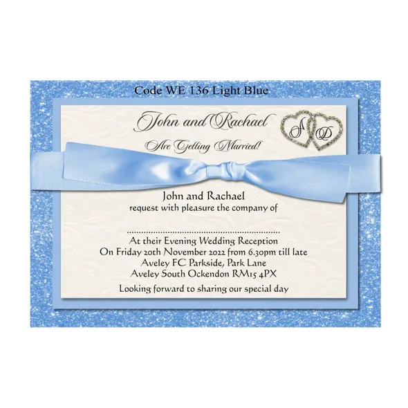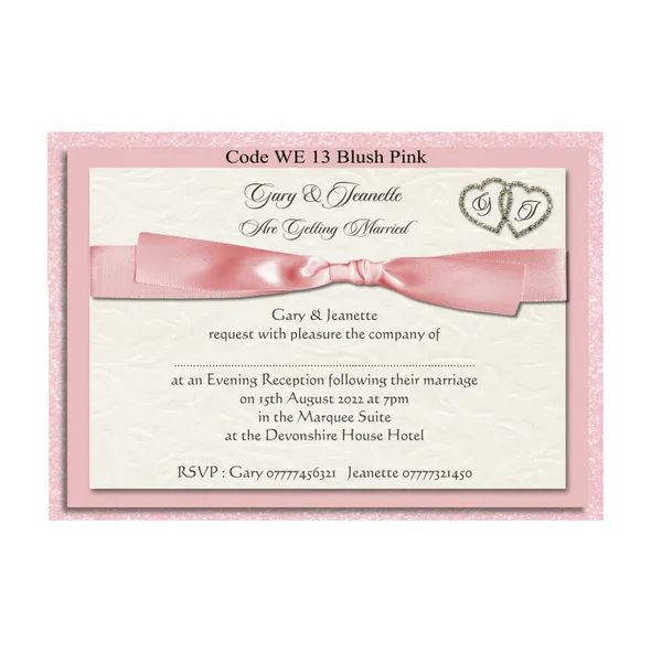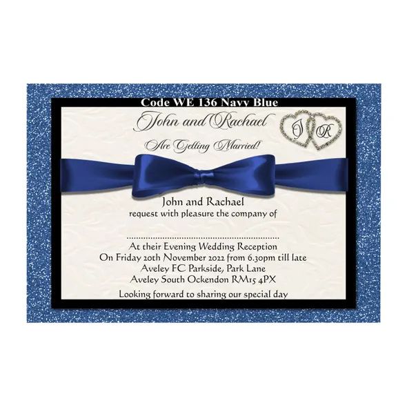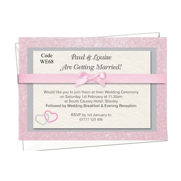 Personalised Wedding Ceremony or Evening Reception Invitations Size A6 148mm x 105mmPrinted full colour on 300gsm card printed Single Sided or Double SidedAll Wedding Day Stationery you require for your special day. We have various Wedding Day Ceremony Invitations and Evening Reception Invitations cards to chose from. All Professional designed, also text fully personalised according to your requirements.We can change background colour, text style and if you have your own design and want something different from our samples so please let us know, we are only to happy to help you with your order.If you don't like the styles we have listed we can do a bespoke style, in fact anything about our invitations can be changed.Any questions please send a message to carole@cpprintservices.co.uk