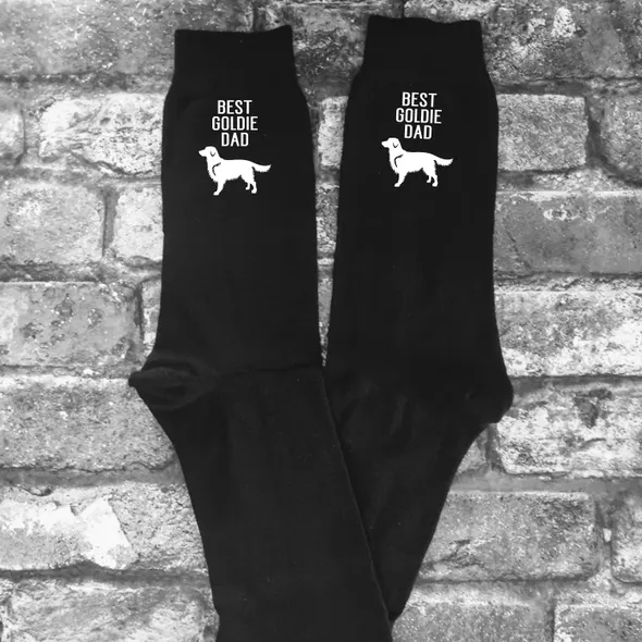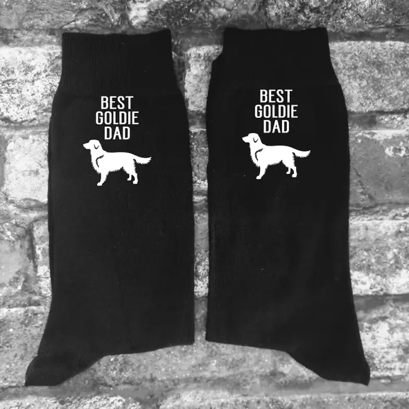 Novelty Dad Goldie Dog Socks.Great humorous gift, ideal for Father's Day or Christmas. These socks are a great budget and useful gift, the writing is printed in vinyl on the sides of the socks, it will be printed so that it is visible on the outside of the socks as you are wearing them. PLEASE NOTE: THESE ARE NOT THICK SPORTS SOCKS, THEY ARE THE THINNER DRESS SOCKS.Machine washableAll of my items are made using high quality heat transfer vinyl with an industrial heat press. Washing:Please wash at 40° or lower with similar colours. Ironing:Please iron inside out. Do not iron design.Colours may appear different due to monitors/screen.Please ensure you have purchased the correct size and style before ordering. All our items are made to order. <<<<<< Please remember we are UK based & as such may be in a different time zone to you, so please be aware that there may be a delay in response to conversations. >>>>>>****************************************************************************************************************************************************************<<<<<< Shipping Information >>>>>>We are UK based and ship most items by Royal MailUK: 2nd Class Royal Mail – following dispatch expect delivery within 2-5 days.UK UPGRADE TO 1st Class – following dispatch expect delivery within 1-2 daysEUROPE: Royal Mail International Standard - following dispatch expect delivery within 5-14 days. THIS SERVICE IS NOT TRACKED. EUROPEAN UPGRADE: Royal Mail International Tracked or Tracked and Signed - following dispatch expect delivery within 5-14 days.RUSSIA: Tracked or Tracked & Signed only.USA, AUSTRALIA & NEW ZEALAND: Royal Mail International Standard: IF YOU CHOOSE THIS OPTION IT IS NOT TRACKED – following dispatch expect delivery in 2-5 weeks (this may be longer during holiday periods).USA, AUSTRALIA & NEW ZEALAND UPGRADE: Royal Mail International Tracked - following dispatch expect delivery within 2-5 weeks.CANADA: Royal Mail International Tracked - following dispatch expect delivery within 2-5 weeks (this may be longer during holiday periods).Please note that we cannot be held responsible for any delays at Customs or otherwise due to Strikes, Weather Conditions or other unforeseen circumstances outside of our control.PLEASE NOTE that in all cases our Standard Shop Processing Times still apply *** If your order is Time Sensitive please let us know as soon as possible, ideally before making a purchase so that we can advise you accordingly if your need by date is achievable. ********************************************************************************************************************************************************************<<<<<< Delivery Information >>>>>>Any Items ordered by you will be delivered to the address that you supplied to Etsy. If any of the details in your delivery address that you gave us are incorrect, we are not liable for any items not received.You may request an address for delivery that is different to your billing address, if, for example, you would like us to deliver the items directly to a friend, a relative, or to your place of work.Delivery will be made as soon as possible, all delivery and dispatch timescales quoted do not include weekends or bank holidays.Some postal addresses in Northern Ireland, some offshore islands and some remote areas of Great Britain may not be covered by our normal delivery services and so we may have to contact you to advise you of extra postal charges.