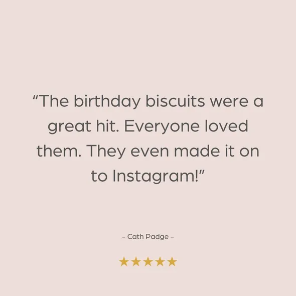All ‘Happy Birthday’ biscuit gift boxes are handmade to order. Each biscuit measures roughly 7.5cm/3 inches in diameter.