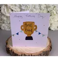 Individually hand drawn Father's Day card, made to order. Trophy design for the best Dad on Father's Day. The card has been left blank inside for you to write your own personal message The card is made using high quality 250 gsm card stock and comes with an envelope and cello wrap to protect the card in transit. The card measure 5x5 inches. Thank you for looking at my shop, you can find more of my products here Georgie Images are copyright of Georgia Hutchinson of Georgie Maia 2022, please do not replicate in any way. Note: Please be aware that different computers might reproduce colours slightly differently.