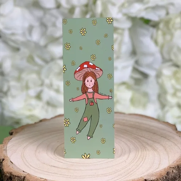 The bookmark size is 148mm x 52mm and one side features the illustration as shown and the back features my small logo