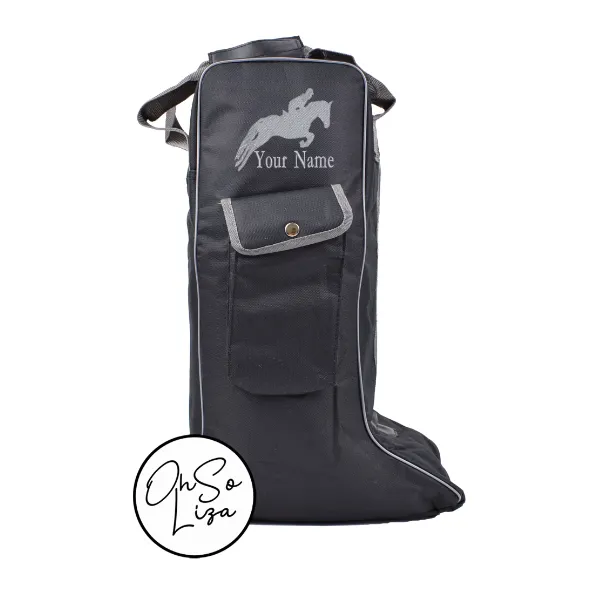 This Strong & Attractive Personalised Embroidered Long Boot Bag is ideal to keep your Tall Riding Boots safe and clean while carrying, travelling or storing between Competitions or Ride Outs. This Deluxe Boot Bag can be optionally personalised with Monogram Embroidery as shown in the Gallery .