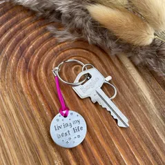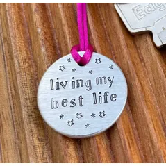 Living My Best Life -hand metal stamped keyring-choice of colour-motivation & encouragement-perfect positive gift for friends or loved ones