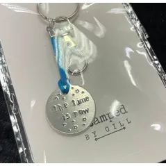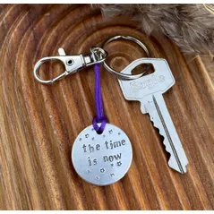 The Time Is Now -hand metal stamped keyring -choice of colour -motivation & encouragement - perfect positive gift for friends or loved ones