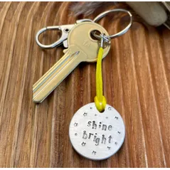 Shine Bright - hand metal stamped keyring - choice of colour - motivation & encouragement - perfect positive gift for friends or loved ones