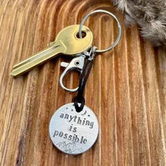 Anything Is Possible -hand metal stamped keyring-choice of colour-motivation & encouragement-perfect positive gift for friends or loved ones