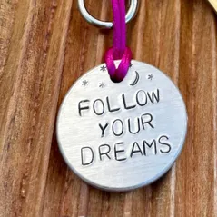 Follow Your Dreams -hand metal stamped keyring -choice of colour -motivation & encouragement-perfect positive gift for friends or loved ones