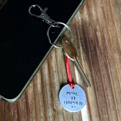 Make It Happen - hand metal stamped keyring - choice of colour - motivation & encouragement -perfect positive gift for friends or loved ones