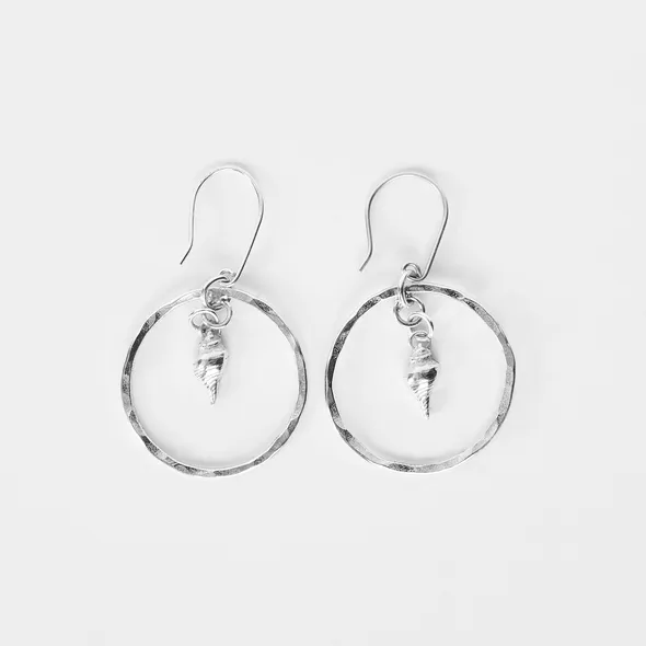 Give the gift of sea treasure with these beautiful handmade fine silver sea shells with sterling silver hoops and ear wires. My creation. Ideal gift for lovers of the ocean.