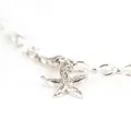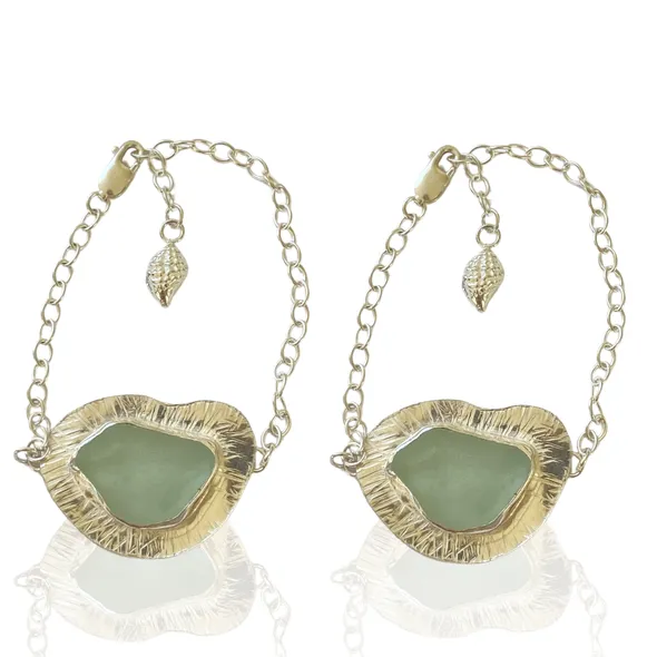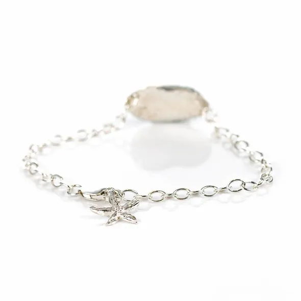 Handmade Ocean Sea Glass bracelet, linked on a sterling silver chain with a fine silver starfish charm