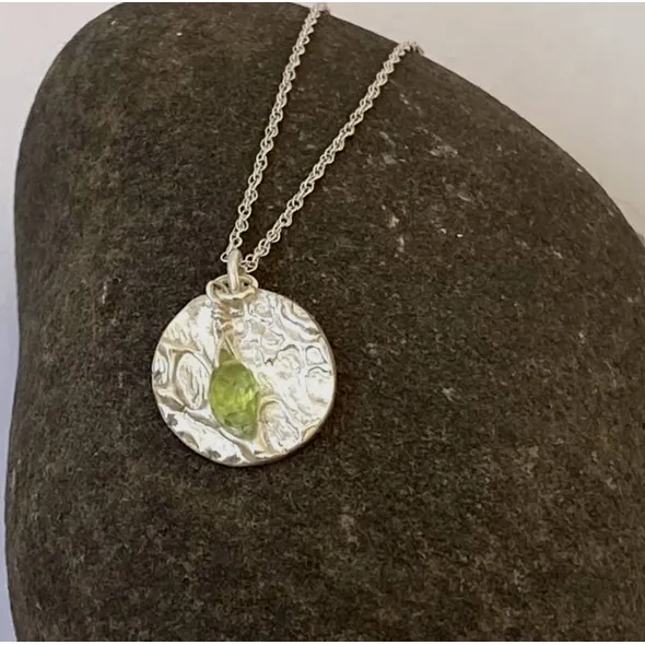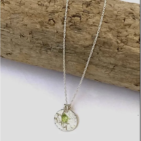 These dainty Silver pendants are handmade with fine silver 99.9% silver. Carefully adding a soft design. Being handmade no two pieces wI’ll be exactly the same. The Gemstones are wire-wrapped by hand and attached to the pendant.. They can celebrate a Birthday, Anniversary, children/other family members' birth month(s), or just as a simple expression of love for someone special - yourself included!