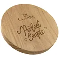 We are delighted to present our new range of British made carved chopping and presentation boards, hand crafted in British Oak. The entire process, from seasoning through selection, sawing, shaping, carving and oiling, results in each of our boards being totally unique, full of character and craftsmanship and quintessentially British. Each board is presented in a jute drawstring bag to protect the board.Beautifully carved with the surname of the happy couple and the message: âThe Perfect Coupleâ making it a perfect wedding or anniversary gift. The decorated board face is great for use as a presentation board when serving food. The other side of the board is left blank so it can be used as a chopping board. If you would prefer an alternative to âMr. & Mrsâ just let us know.The board has its own unique characteristics depending on the tree and the part of the tree it originates from. Some will have decorative medullary rays on the edges or one or more faces. These rays are formed from ribbon like groups of cells which conveyed sap through the trunk of the Oak, putting them the heart of the growing process. Others will have small knots which have formed naturally during the growth cycle of the tree. Each board will also have its own unique colouring depending on the age and life of the tree it originates from. All of these naturally occurring characteristics add to the individuality of your chopping board.Wood has a natural tendency to curve with changes in humidity and the larger the surface area, the more prone the wood is to warping. Our round boards are made from two pieces of oak, carefully matched for grain pattern and colour and traditionally joined in opposing halves to create a natural tension within the board, minimising the risk of warping and cracking.Board Specifications:- Diameter 29.5cm- Thickness 3.5cm- Weight 1.6 Kg-- Sourced from the highest quality British Oak and finished with food safe mineral oil to help protect the wood.