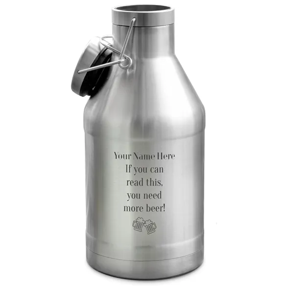 Our eco-friendly personalised beer growlers are the perfect gift for beer enthusiasts. This design can be personalised with the name of your choice above the design, if ordered without personalisation the growler will only feature 'If you can read this, you need more beer!' and the beer mug icons. A sustainable and eco-friendly alternative to bottles, cans, plastic or cardboard containers, our 3.5 pint double walled vacuum stainless steel beer growler will keep your beer tasting great for longer and allow you to take it wherever you want to go: to a party, a friend’s house, a picnic, a BBQ, on a camping trip or staycation, or just into your own back garden. • The flip top lid and silicone cap create a tight seal, minimising/preventing oxygen entering the growler and tainting the beer and preventing leaks. • Made from the highest food grade stainless steel 304, the growlers are impervious to chemical reactions to the beer and protect the beer from harmful UV light which can adversely affect the flavour of the beer. • Buying beer by filling and re-filling a growler enables enthusiasts to enjoy beer as fresh as it comes without the risk of breakage or leakage. • A quick wipe around the lid after sealing the growler will make sure the wasps aren’t attracted to the container – especially useful when being used outdoors. • Support local business by filling the growler up at your local pub, brewery, or craft beer house.