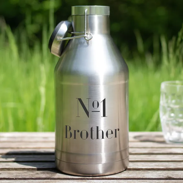 Our eco-friendly personalised beer growlers are the perfect gift for beer enthusiasts. This design can be personalised with the name of a person of your choice, whether it's a parent, spouse, sibling, friend or someone else! A sustainable and eco-friendly alternative to bottles, cans, plastic or cardboard containers, our 3.5 pint double walled vacuum stainless steel beer growler will keep your beer tasting great for longer and allow you to take it wherever you want to go: to a party, a friend’s house, a picnic, a BBQ, on a camping trip or staycation, or just into your own back garden. • The flip top lid and silicone cap create a tight seal, minimising/preventing oxygen entering the growler and tainting the beer and preventing leaks. • Made from the highest food grade stainless steel 304, the growlers are impervious to chemical reactions to the beer and protect the beer from harmful UV light which can adversely affect the flavour of the beer. • Buying beer by filling and re-filling a growler enables enthusiasts to enjoy beer as fresh as it comes without the risk of breakage or leakage. • A quick wipe around the lid after sealing the growler will make sure the wasps aren’t attracted to the container – especially useful when being used outdoors. • Support local business by filling the growler up at your local pub, brewery, or craft beer house.