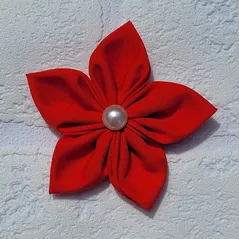 Handmade Red 5-petal Flower Hair Accessory, Brooch or Dog Collar embellishment.