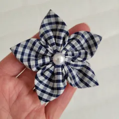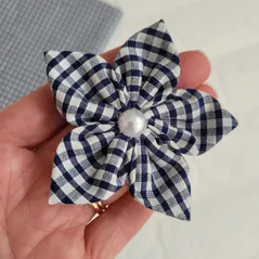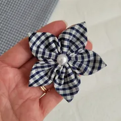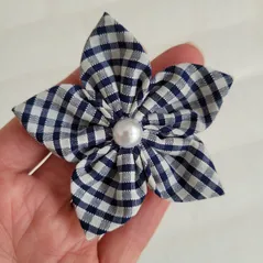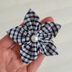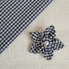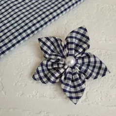 Navy Gingham Handmade Flower Bow