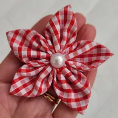 Red Gingham Flower Bow