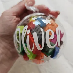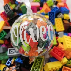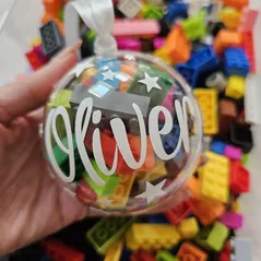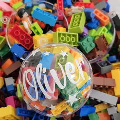 Personalised bauble filled with building bricks | Christmas Bauble, Personalised Bauble