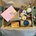Eucalyptus breeze is an essential oil blend of eucalyptus with just a hint of spicy bay and clove.Every product comes beautifully presented and can include a gift message and a complimentary bundle of our homemade grown dried flowers if you wish.The range includes a net~100g matte rose gold tin candle, a net ~220g glass candle in either amber glass or emerald glass with an engraved Havannah bamboo lid and also a reed diffuser. All our orders can come with a complimentary mini bundle of dried flowers, but if you would not like these included or have specific requirements (e.g flower allergies) please do inform us. Please also inform us if you have a preference in terms of glass colour and combination.Burn time for our tin candles is around 20 hours and for our glass candles around 45 hours. Burn the candle for long enough to reach a full melt pool, which may be up to 4 hours on first use. We would recommend subsequently burning the candle ideally for 2-3 hours at a time, letting it cool completely and trimming the wick before relighting. Do not burn for longer than 4 hours at a time. Do not worry if you have a thin layer of wax on the side of your vessel on the first few burns, our candles typically catch up and excess wax will melt down on subsequent burns. Never leave candles unattended. Burn candles on a heat proof surface, away from drafts and vibrations. Keep out of reach and household pets and children. Check the CLP and safety labels before use and consider allergies and sensitivities of people, children and pets who may be in close proximity of a fragranced candle.Please note we usually try to keep candles ready for immediate dispatch and in stock. The candles do require 3 days to cure so occasionally your order may take longer to arrive if it is made to order but we will always keep you updated at the point of order if this is the case.We are able to mix and match candles in a gift box, feel free to contact us with any specific requirements.Our reed diffusers come in amber or emerald glass to match our glass candle range and include a black cap and 8 slim black fibre reeds. Always follow the recommendations for use on the outer packaging. Large spaces may require more than one diffuser, using all the reeds provided to maximise the scent. For smaller rooms, consider using a reed or two less. Motion in a room aids air movement to help circulate the scent. Do not place your diffuser beside an open window and avoid radiators or particularly warm areas in direct sunlight as heat will result in faster evaporation of the oils.Diffuser safety:WARNING Flammable liquid. Do not light reeds. Do not ingest.Keep away and out of reach of children & pets. People suffering from perfume sensitivity should be cautious when using this product. Use gloves when handling the reeds. Do not place the diffuser onto polished, painted, plastic or leather surfaces or on electrical equipment, as accidental spillage may cause damage to certain materials.You may find our essential oil blend candles and diffusers are more subtle than our products that contain fragrance oils. The scents are distinct but not powerful. We try to get the balance just right, but feel free to contact us for recommendations if you prefer a stronger scent.