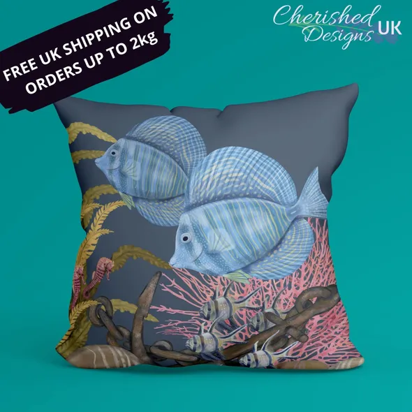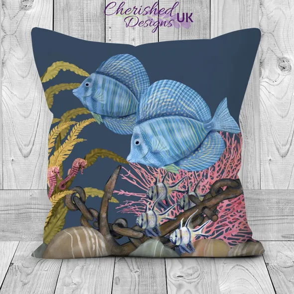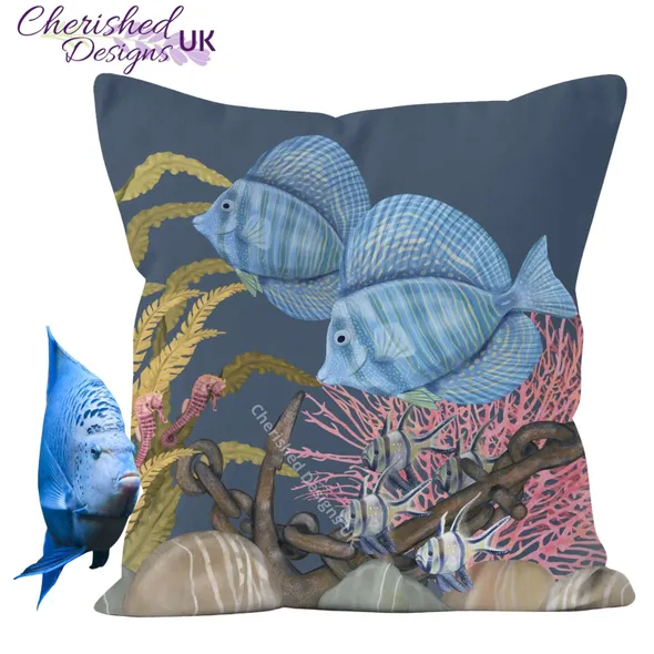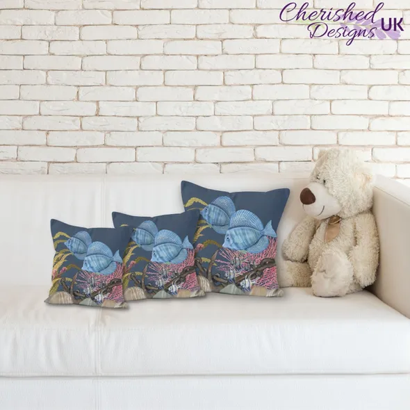Blue Marine Fish Decorative Poly Linen Cushions & Covers