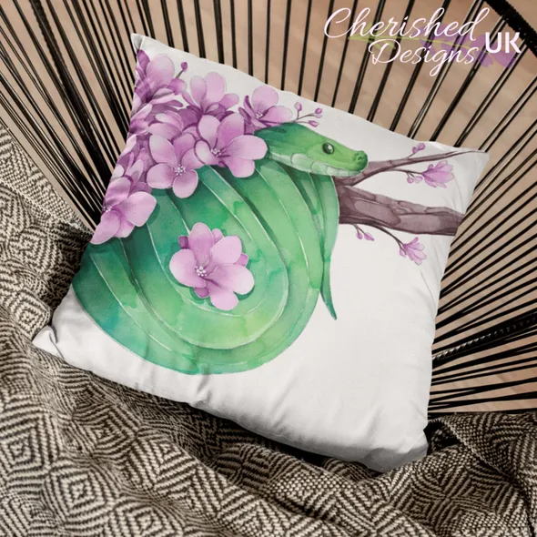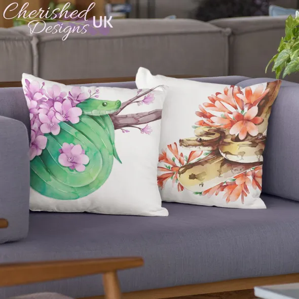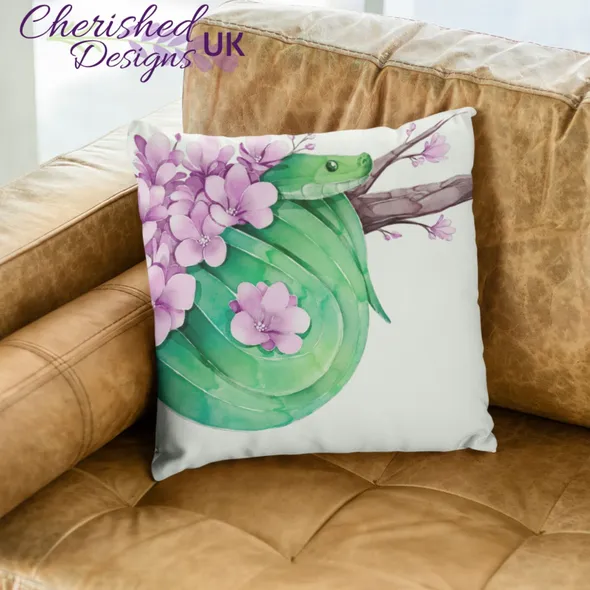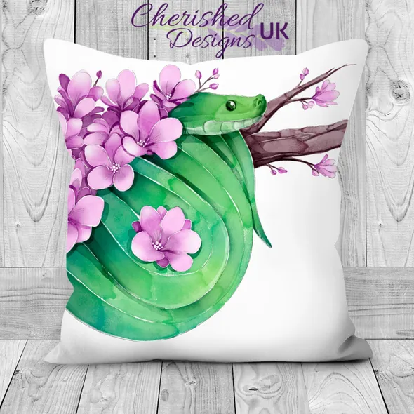 WELCOME TO CHERISHED DESIGNS UK … THANK YOU FOR CHECKING OUT OUR ITEM This pretty Green Tree Python cushion was designed to mix and match with the Brown Python cushion and will not look out of place in any snake lovers home. Pythons are hugely popular in the reptile keeping hobby and now come in a wide range of colours and patterns. They are available in 30x30 cm (12"x12") … 45x45 cm (18"x18") and 60x60 cm (24"x24") sizes (please note the largest size is huge as stated by our customers!) Our cushions come with or without the plump inners... if you choose to have your cushions with an inner you will be pleased to know they are made from 100% hygienic faux fibre filling to give a plump yet luxurious feel, they conform to BS 5852 UK fire safety regulations. All our zips are sewn using an invisible style to provide a clean look and easy care provision. Our cushion covers can be fully machined washed without fear of the gorgeous image fading.