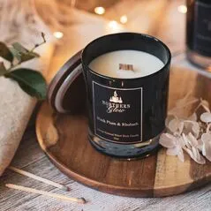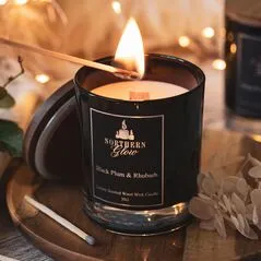 Black Plum & Rhubarb Scented Wood Wick Candle - Handmade Elegance for Your Home