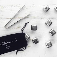 (Insert name here) Chill out design set of 8 eco-friendly reusable personalised stainless steel ice cubes/whisky stones