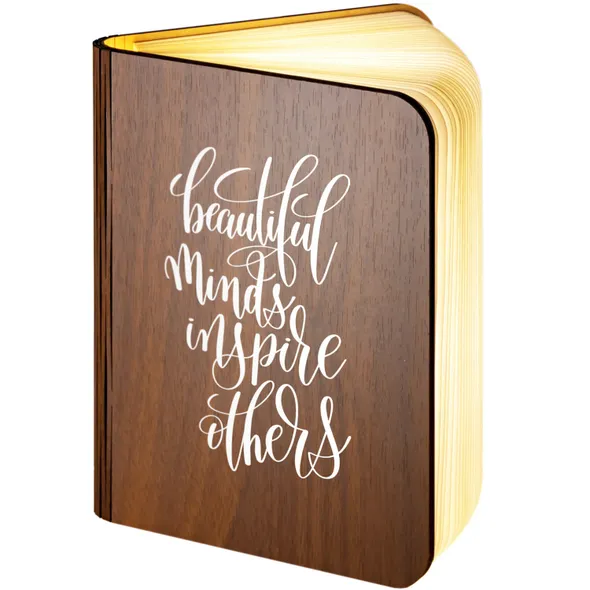 Beautiful Minds Inspire Others Design Personalised Wooden Folding Magnetic Glowing LED Book Lamp
