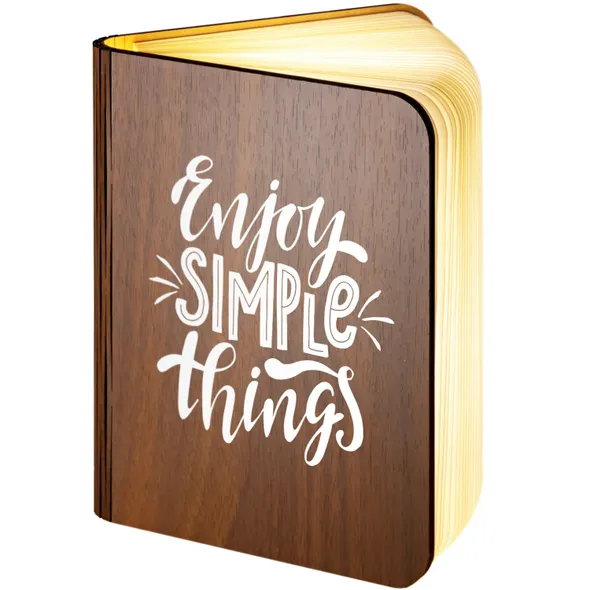 Our wooden folding magnetic glowing LED book light is an ideal gift which makes a stunning gift for any recipient.It opens like a book, and the special hinge design allows you to change its shape according to your needs. Whether you are in the living room or your child is reading a bedtime story, book lights provide you with an elegant and fun lighting solution.Additionally, you can make this a unique gift with our great range of designs for the front and an additional personalised message on the back cover of the book. The outer cover is made from wood with a durable, waterproof, Dupont paper 'pages' expanding inner cover which diffuses and enhances the warm light from the multiple LED bulbs the instant you open the book.This is a really warm, comforting, remarkable gift which will literally make the recipients face light up.- Folding LED Book Lamp, can fold up to 360 degrees to create a mood / reading light- Magnetic covers for folding back onto itself or sticking to steel objects- Powered by internal battery. Re-chargeable with included USB cable from USB port / charger- Operating time 4-6 hours / Charging time 3-4 hours. Durable Waterproof Dupont Paper 'pages'- Make this a truly special gift by adding your own personal message on the book back