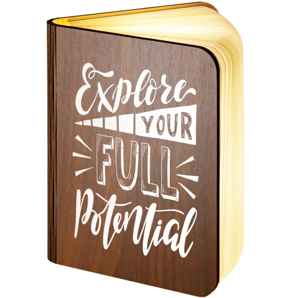 Explore Your Full Potential Design Personalised Wooden Folding Magnetic Glowing LED Book Lamp