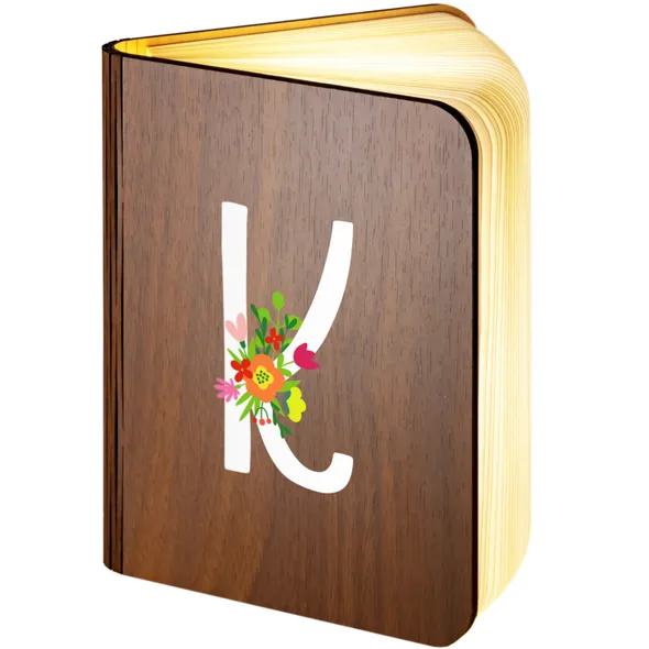 Floral Alphabet - K Design Personalised Wooden Folding Magnetic Glowing LED Book Lamp