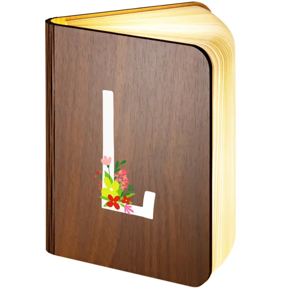 Floral Alphabet - L Design Personalised Wooden Folding Magnetic Glowing LED Book Lamp