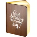 Our wooden folding magnetic glowing LED book light is an ideal gift which makes a stunning gift for any recipient.It opens like a book, and the special hinge design allows you to change its shape according to your needs. Whether you are in the living room or your child is reading a bedtime story, book lights provide you with an elegant and fun lighting solution.Additionally, you can make this a unique gift with our great range of designs for the front and an additional personalised message on the back cover of the book. The outer cover is made from wood with a durable, waterproof, Dupont paper 'pages' expanding inner cover which diffuses and enhances the warm light from the multiple LED bulbs the instant you open the book.This is a really warm, comforting, remarkable gift which will literally make the recipients face light up.- Folding LED Book Lamp, can fold up to 360 degrees to create a mood / reading light- Magnetic covers for folding back onto itself or sticking to steel objects- Powered by internal battery. Re-chargeable with included USB cable from USB port / charger- Operating time 4-6 hours / Charging time 3-4 hours. Durable Waterproof Dupont Paper 'pages'- Make this a truly special gift by adding your own personal message on the book back