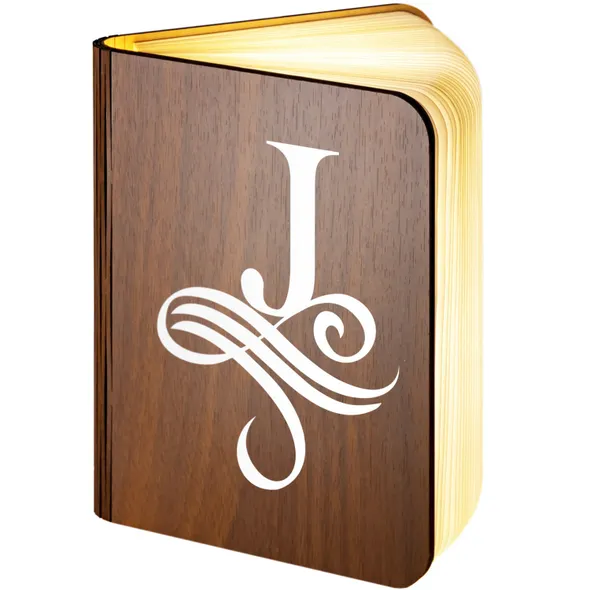 Monogram Style 1 - J Design Personalised Wooden Folding Magnetic Glowing LED Book Lamp