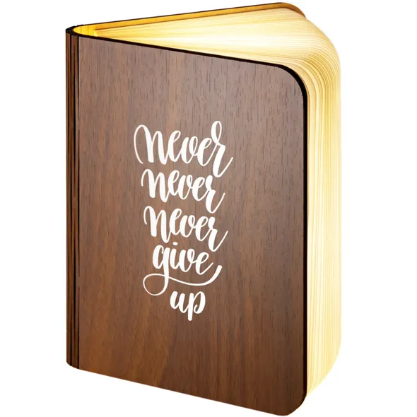 Our wooden folding magnetic glowing LED book light is an ideal gift which makes a stunning gift for any recipient.It opens like a book, and the special hinge design allows you to change its shape according to your needs. Whether you are in the living room or your child is reading a bedtime story, book lights provide you with an elegant and fun lighting solution.Additionally, you can make this a unique gift with our great range of designs for the front and an additional personalised message on the back cover of the book. The outer cover is made from wood with a durable, waterproof, Dupont paper 'pages' expanding inner cover which diffuses and enhances the warm light from the multiple LED bulbs the instant you open the book.This is a really warm, comforting, remarkable gift which will literally make the recipients face light up.- Folding LED Book Lamp, can fold up to 360 degrees to create a mood / reading light- Magnetic covers for folding back onto itself or sticking to steel objects- Powered by internal battery. Re-chargeable with included USB cable from USB port / charger- Operating time 4-6 hours / Charging time 3-4 hours. Durable Waterproof Dupont Paper 'pages'- Make this a truly special gift by adding your own personal message on the book back