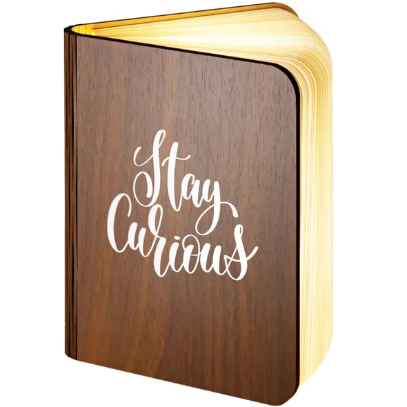 Our wooden folding magnetic glowing LED book light is an ideal gift which makes a stunning gift for any recipient.It opens like a book, and the special hinge design allows you to change its shape according to your needs. Whether you are in the living room or your child is reading a bedtime story, book lights provide you with an elegant and fun lighting solution.Additionally, you can make this a unique gift with our great range of designs for the front and an additional personalised message on the back cover of the book. The outer cover is made from wood with a durable, waterproof, Dupont paper 'pages' expanding inner cover which diffuses and enhances the warm light from the multiple LED bulbs the instant you open the book.This is a really warm, comforting, remarkable gift which will literally make the recipients face light up.- Folding LED Book Lamp, can fold up to 360 degrees to create a mood / reading light- Magnetic covers for folding back onto itself or sticking to steel objects- Powered by internal battery. Re-chargeable with included USB cable from USB port / charger- Operating time 4-6 hours / Charging time 3-4 hours. Durable Waterproof Dupont Paper 'pages'- Make this a truly special gift by adding your own personal message on the book back
